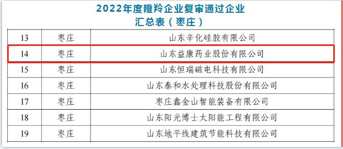 山東益康集團 > 集團新聞集團新聞公司順利通過(guò)山東省瞪羚企業(yè)復審近日,山東省工業(yè)和信息化廳、山東省地方金融監督管理局、中國人民銀行濟南分行公布了2022年度山東省“瞪羚”“獨角獸”企業(yè)名單,山東益康藥業(yè)股份有限公司等7家企業(yè)通過(guò)復核。“瞪羚”企業(yè)是指在山東省境內合法合規生產(chǎn)經(jīng)營(yíng),已經(jīng)跨越創(chuàng )業(yè)期死亡谷,以新技術(shù)、新業(yè)態(tài)、新模式為支撐穩步進(jìn)入高成長(cháng)期,綜合效益突出、行業(yè)影響力大、社會(huì )誠信度高、示范帶動(dòng)性強,在引領(lǐng)中小企業(yè)轉型升級和促進(jìn)經(jīng)濟發(fā)展中作用明顯、成效顯著(zhù)的優(yōu)秀標桿企業(yè)。