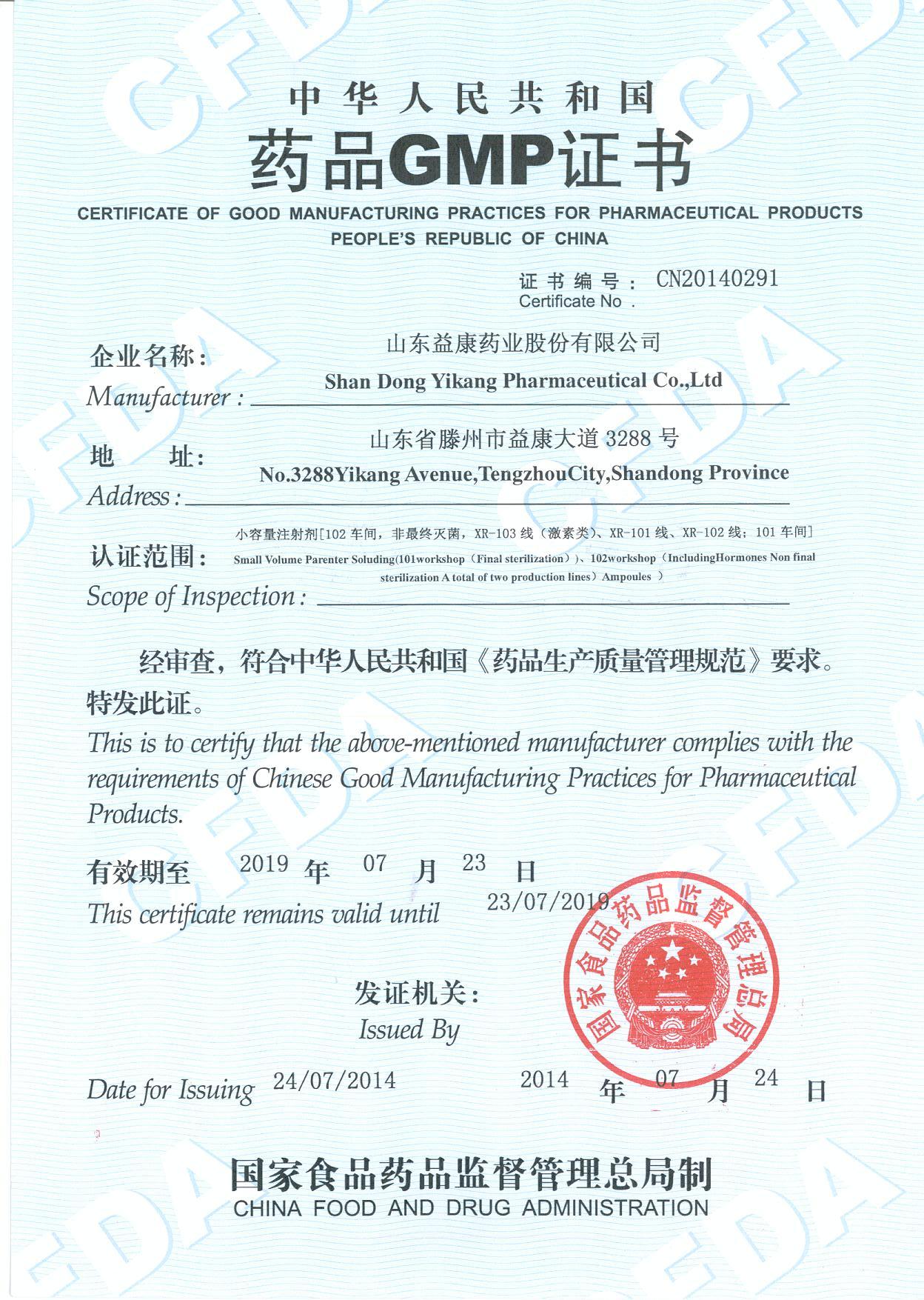 山東益康集團 > 集團新聞集團新聞熱烈慶賀我公司獲得藥品GMP認證證書(shū)2014年07月24日,我公司(山東益康藥業(yè)股份有限公司)已成功獲得《藥品GMP證書(shū)》!證書(shū)編號為:CN20140291。按照《藥品生產(chǎn)質(zhì)量管理規范認證管理辦法》的規定,經(jīng)現場(chǎng)檢查和審核批準,山東益康藥業(yè)股份有限公司符合《藥品生產(chǎn)質(zhì)量管理規范(2010年修訂)》要求,發(fā)給《藥品GMP證書(shū)》。GMP認證是評估企業(yè)制藥質(zhì)量管理及藥品生產(chǎn)監督檢查,是否符合國家標準的重要內容,具有非常重要的意義和價(jià)值。