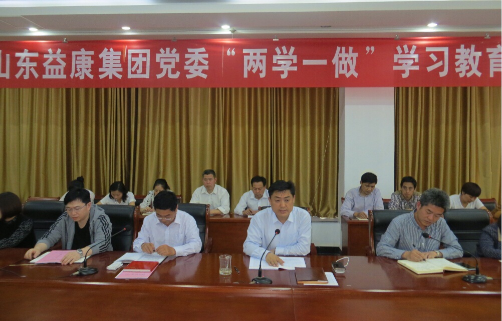 山東益康集團 > 集團新聞集團新聞山東益康集團黨委召開(kāi)“兩學(xué)一做”學(xué)習教育工作座談會(huì )4月30日,山東益康集團黨委召開(kāi)“兩學(xué)一做”學(xué)習教育工作座談會(huì ),全體黨員、入黨積極分子和全體管理人員參會(huì )。 會(huì )上分別傳達了各級黨委關(guān)于“兩學(xué)一做”學(xué)習教育工作座談會(huì )精神,領(lǐng)學(xué)了黨章、黨規和系列講話(huà),宣讀了公司黨委“兩學(xué)一做”學(xué)習教育實(shí)施方案。 會(huì )上,山東益康集團黨委黨委書(shū)記、董事長(cháng)高肇林就“兩學(xué)一做”學(xué)習教育作了重要講話(huà)。強調指出:開(kāi)展“兩學(xué)一做”學(xué)習教育活動(dòng)要做好“四個(gè)結合”,一是,把“兩學(xué)一做”與提高員工隊伍素質(zhì)相結合,要把學(xué)習教育作為職工隊伍素質(zhì)建設的指引,以黨員先進(jìn)性帶動(dòng)職工素質(zhì)提升,形成學(xué)業(yè)務(wù)、強技能,提升綜合素質(zhì)的濃厚氛圍。二是,把做合格黨員與弘揚“工匠精神”相結合,要大力弘揚勞模精神、工匠精神,開(kāi)展“崗位成才在一線(xiàn)”活動(dòng),打造“一流職業(yè)素養、一流業(yè)務(wù)技能、一流工作作風(fēng)、一流崗位業(yè)績(jì)”的職工隊伍,弘揚精益求精的工匠精神,提技能、練本領(lǐng),自覺(jué)跟上企業(yè)發(fā)展的步伐。三是,把“兩學(xué)一做”與“強支部、促班組建設”相結合。要通過(guò)學(xué)習教育讓黨的每一個(gè)細胞都健康起來(lái)、每一個(gè)組織都堅強起來(lái)。要突出黨支部的戰斗堡壘作用,落實(shí)“黨支部工作細則”和“班組建設管理辦法”,努力構建充滿(mǎn)活力、勇于創(chuàng )新、健康高效的基層組織。四是,把“兩學(xué)一做”與“黨員活動(dòng)日”主題活動(dòng)相結合,要把“兩學(xué)一做”放在事關(guān)企業(yè)發(fā)展全局的高度,緊密結合益康集團發(fā)展實(shí)際,扎實(shí)開(kāi)展學(xué)習教育,圍繞“中國夢(mèng)”、“企業(yè)夢(mèng)”,堅定信念,加強黨性修養,號召全體黨員帶頭踐行組織使命、戰略愿景、核心價(jià)值觀(guān)、企業(yè)精神、企業(yè)宗旨、企業(yè)作風(fēng)、經(jīng)營(yíng)理念和行為準則,用企業(yè)文化引領(lǐng)企業(yè)發(fā)展。