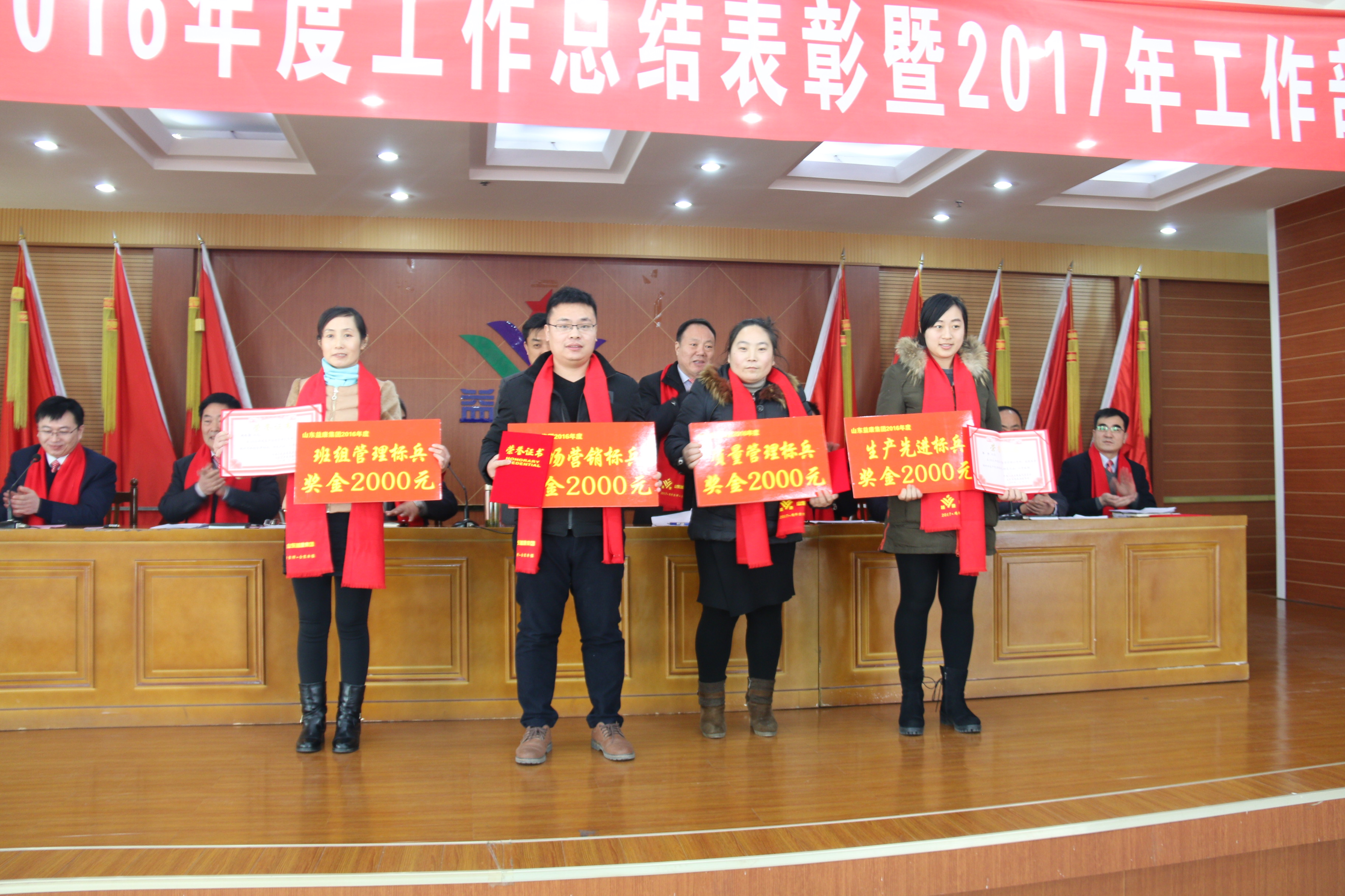 山東益康集團 > 集團新聞集團新聞益康集團隆重召開(kāi)2016年度工作總結表彰暨2017年工作部署大會(huì ) 1月25日,集團公司在第一會(huì )議室隆重召開(kāi)2016年度工作總結表彰暨2017年工作部署大會(huì ),總結2016年取得的成績(jì)和經(jīng)驗,分析形勢,部署2017年重點(diǎn)工作,同時(shí)表彰2016年度集團先進(jìn)集體、先進(jìn)標兵及先進(jìn)個(gè)人。 會(huì )議由副總經(jīng)理史永強同志主持,總經(jīng)理劉仰化同志做2016年度工作報告,副總經(jīng)理朱君同志宣讀了表彰決定和獲獎名單。在歡快的音樂(lè )聲中,公司領(lǐng)導為獲獎的集體和個(gè)人頒發(fā)了獎金和證書(shū)。 會(huì )議最后,高肇林董事長(cháng)做重要講話(huà)。他首先肯定了公司在過(guò)去一年所取得的成績(jì),要求各單位、各部門(mén)認真落實(shí)2017年的工作目標,在工作中認真貫徹,挽起袖子,真抓實(shí)干;其次從國內外形勢、產(chǎn)業(yè)政策、企業(yè)管理、品牌建設、精準研發(fā)、資本運營(yíng)等八個(gè)方面對2017年的整體工作進(jìn)行了重點(diǎn)布置;最后他強調醫藥和食品是永遠的朝陽(yáng)產(chǎn)業(yè),也是始終充滿(mǎn)著(zhù)競爭的領(lǐng)域。在今后的發(fā)展中,益康人要形成利益共享,風(fēng)險同擔的命運共同體,團結一致,迎接挑戰,共同搏擊風(fēng)云多變市場(chǎng),共同為創(chuàng )造更加美好的明天而努力拼搏!