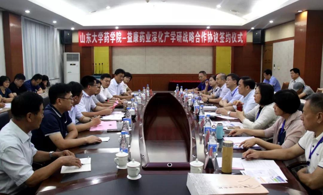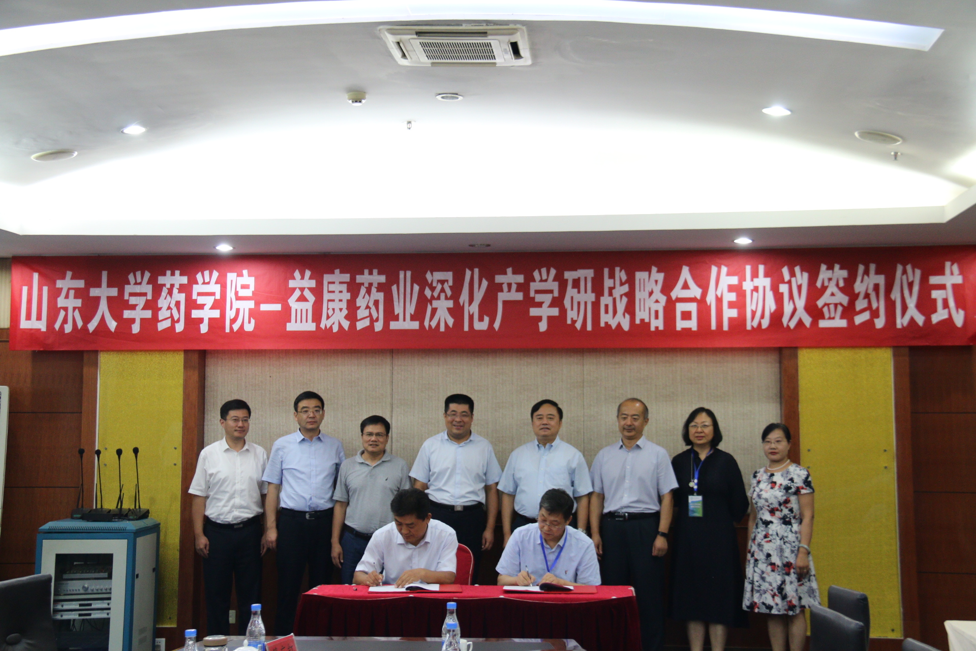 山東益康集團 > 集團新聞集團新聞益康藥業(yè)—山東大學(xué)藥學(xué)院舉行深化產(chǎn)學(xué)研戰略合作協(xié)議簽約儀式8月19日,公司與山東大學(xué)藥學(xué)院舉行深化產(chǎn)學(xué)研戰略合作協(xié)議簽約儀式。齊魯醫學(xué)院副院長(cháng)王鳳山,山東大學(xué)藥學(xué)院黨委書(shū)記王曉林,山東大學(xué)藥學(xué)院院長(cháng)劉新泳等出席簽約儀式。滕州市委常委、組織部長(cháng)、統戰部長(cháng)高鵬,滕州市科技局局長(cháng)董鴻洋,南沙河鎮黨委書(shū)記周琪、鎮長(cháng)樊曉陽(yáng),益康集團黨委書(shū)記、董事長(cháng)高肇林等相關(guān)領(lǐng)導參加簽約儀式。